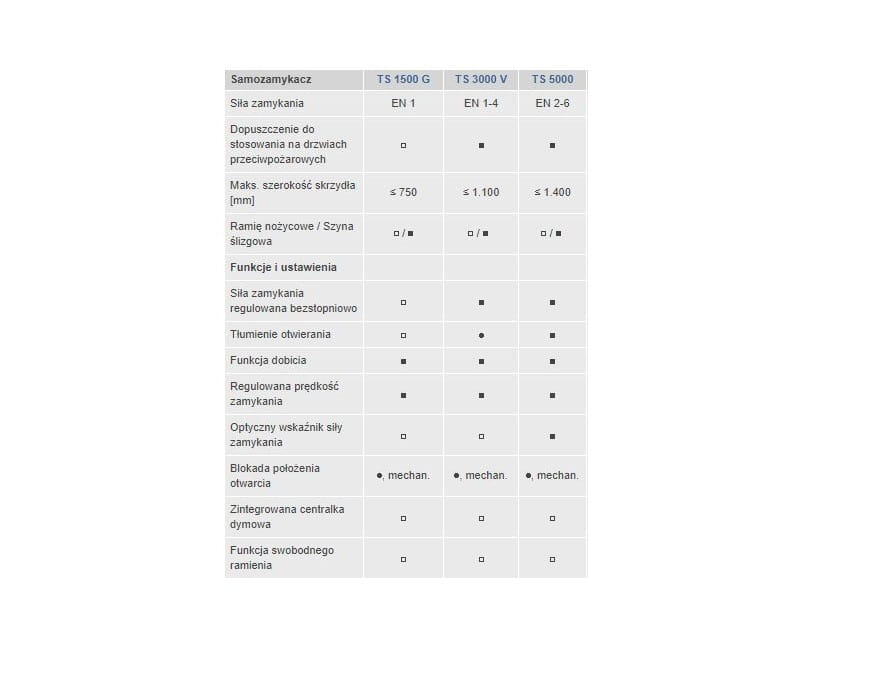 - regulowana siła EN 1-4 (według normy PN EN 1154)