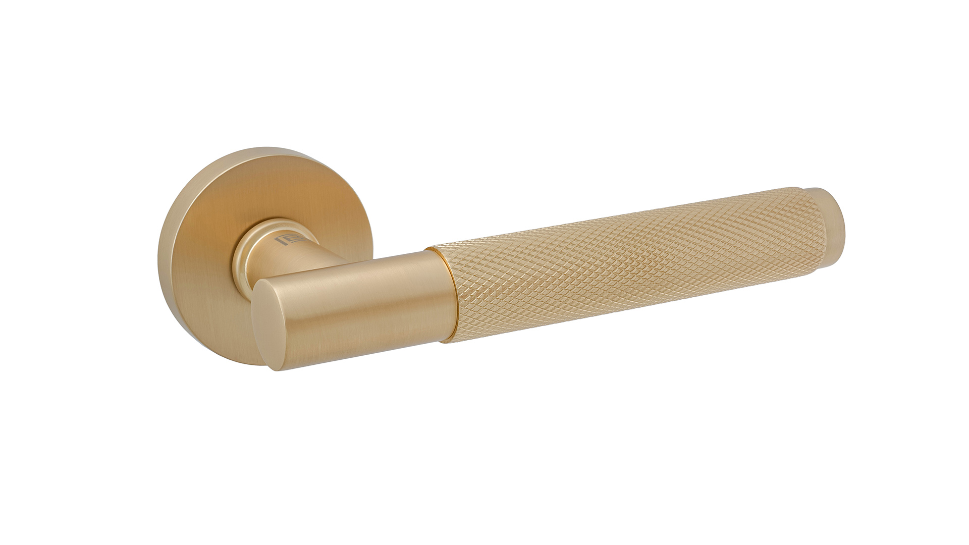 klamka drzwiowa BLITZ Anya na szyldzie okrągłym mosiądz satyna