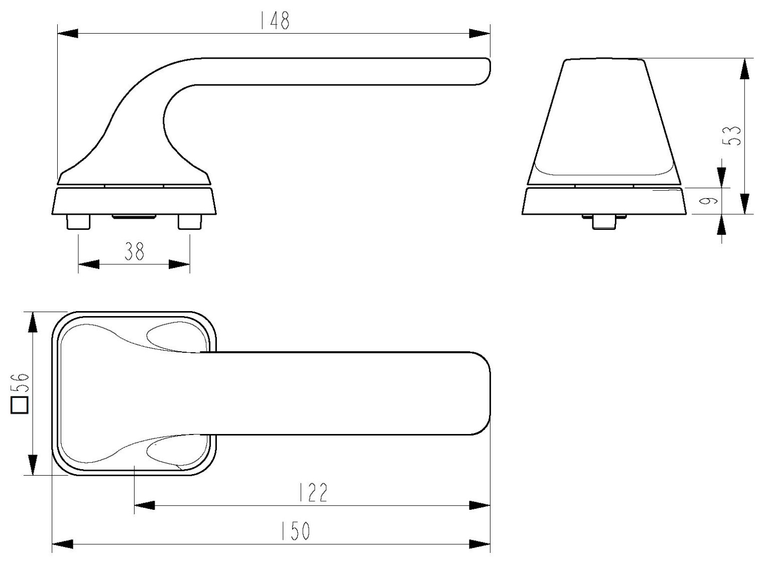 mocna ciężka klamka Nomet Elara na szyldzie krótkim kwadrat