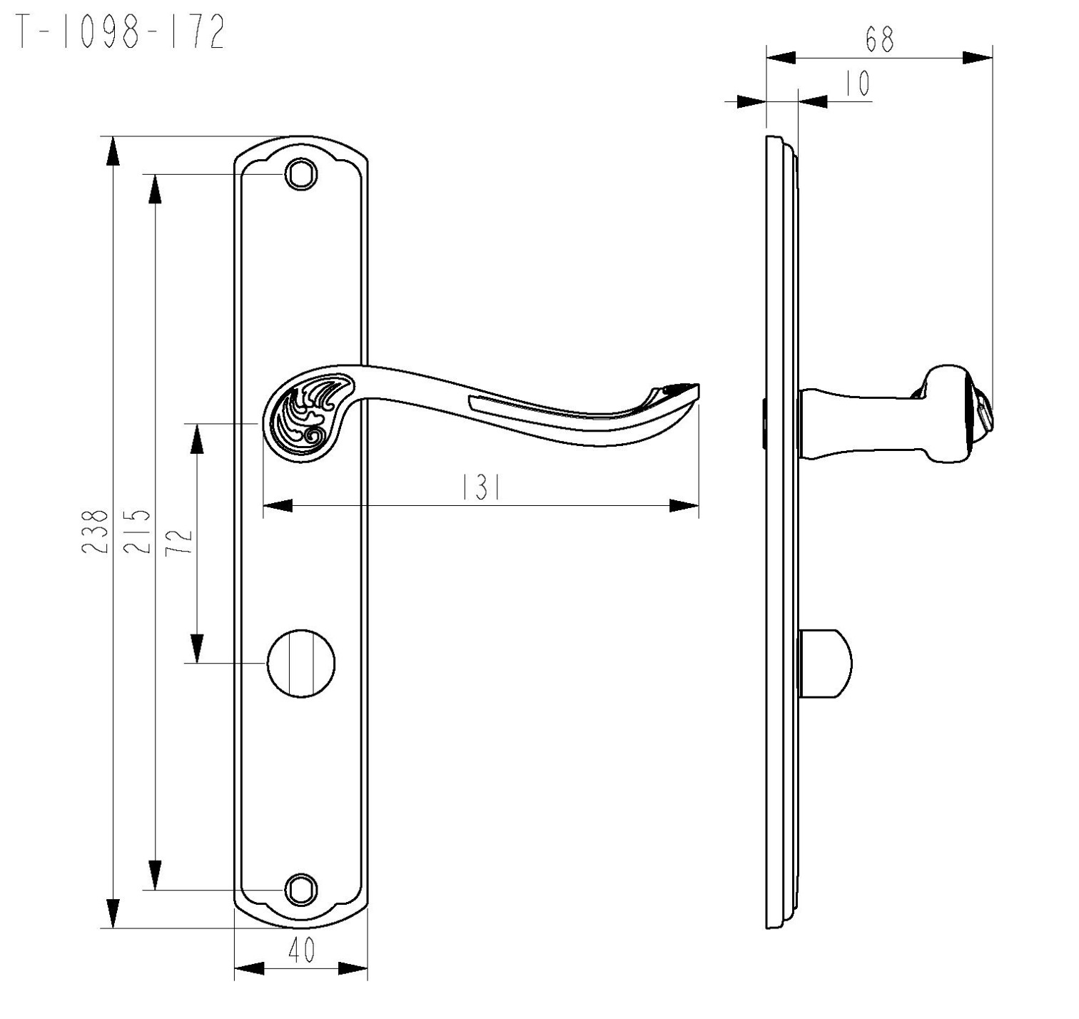 mocna ciężka klamka do kościoła Tucana 72 na szyldzie podłużnym