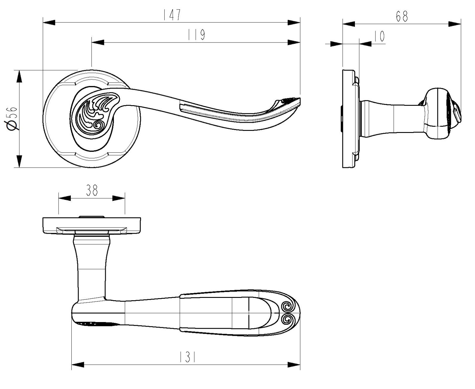 - Wersja na rozecie jest rozwiązaniem dzielonym, co oznacza niezależny montaż klamki i elementów towarzyszących, takich jak rozeta pod klucz lub wkładkę, i zapewnia dużą elastyczność zastosowania w drzwiach wewnętrznych.