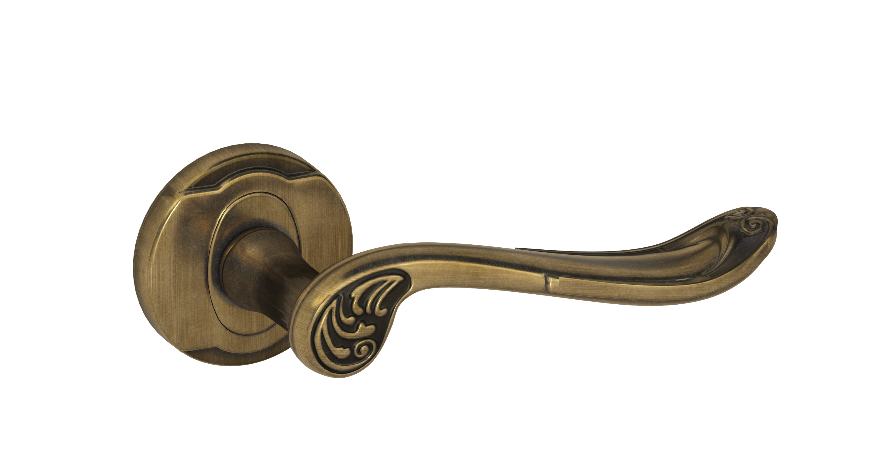 klamka drzwiowa retro Nomet Tucana na rozecie patyna mosiądz