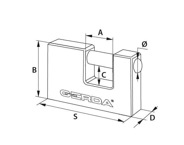 Popularna mosiężna sztabowa na mały klucz, samozatrzaskowa, produkowana przez firmę Gerda. Kłódka należy do serii kłódek Gerda Brass Line. Do kłódki dołączono 3 klucze.