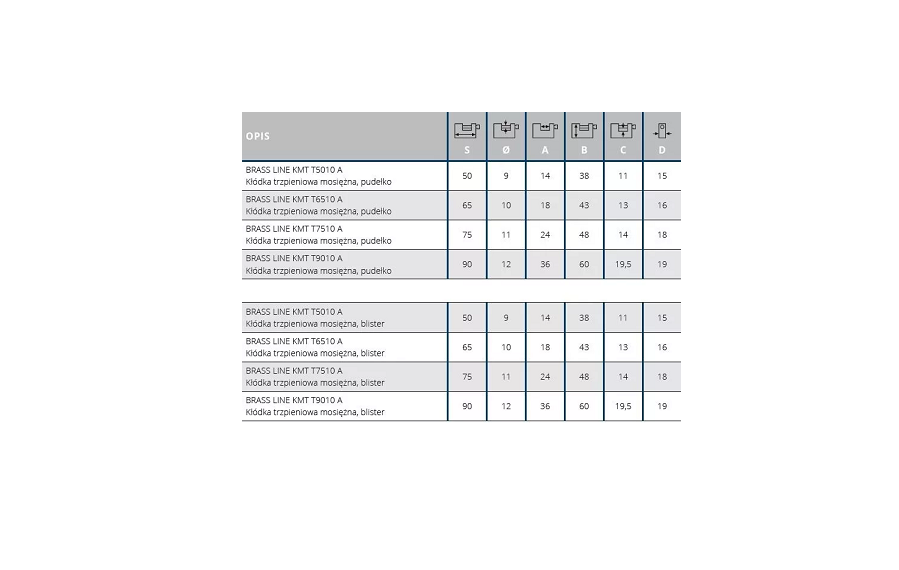 kłódka mosiężna zatrzaskowa Brass Line GERDA KMT 65