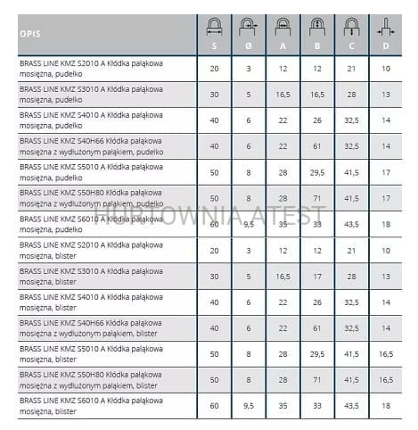kłódka mosiężna zatrzaskowa Brass Line GERDA KMZ 50