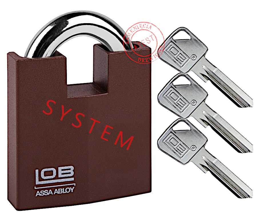 kłódka systemowa na 1 jeden klucz wzmocniona LOB KW02 duża - klucz ARES