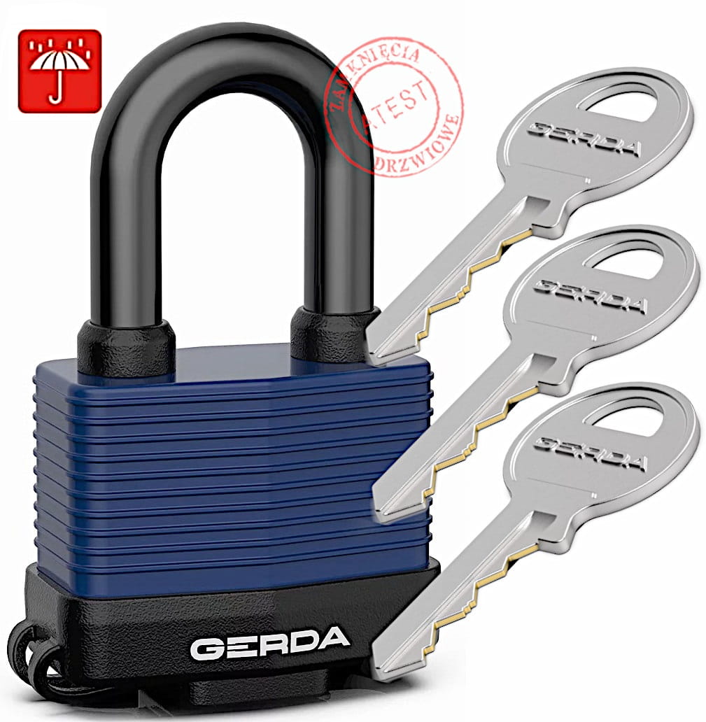 Kłódka Gerda Modus Aqua to wysokiej jakości zabezpieczenie renomowanego polskiego producenta, który od lat cieszy się zaufaniem użytkowników dzięki solidnym i trwałym rozwiązaniom antywłamaniowym. Każda kłódka z tej serii dostarczana jest w komplecie z trzema kluczami. Model Modus Aqua został stworzony z myślą o niezawodności w trudnych warunkach atmosferycznych, na deszczu, mrozie, wysokiej wilgotności, czy po prostu przy stałym kontakcie z wodą.