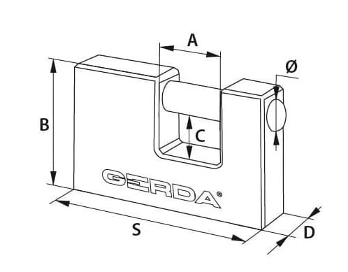 Popularna budżetowa kłódka sztabowa żeliwna na mały klucz, samozatrzaskowa, lakierowana na kolor czarny, produkowana przez firmę Gerda. Kłódka należy do serii kłódek Gerda Iron Line. Korpus z żeliwa, trzpień utwardzany, zamknięcie typu zatrzaskowego. Do kłódki dołączono 3 klucze.