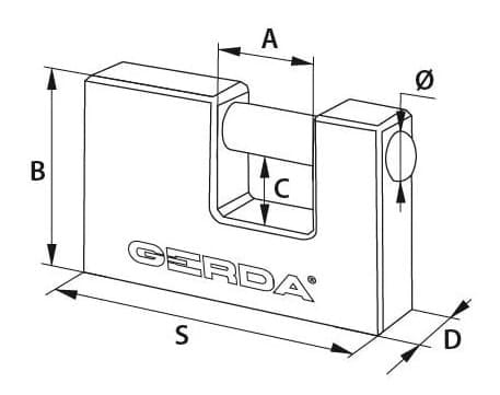Popularna budżetowa kłódka sztabowa żeliwna na mały klucz, samozatrzaskowa, lakierowana na kolor czarny, produkowana przez firmę Gerda. Kłódka należy do serii kłódek Gerda Iron Line. Korpus z żeliwa, trzpień utwardzany, zamknięcie typu zatrzaskowego. Do kłódki dołączono 3 klucze.