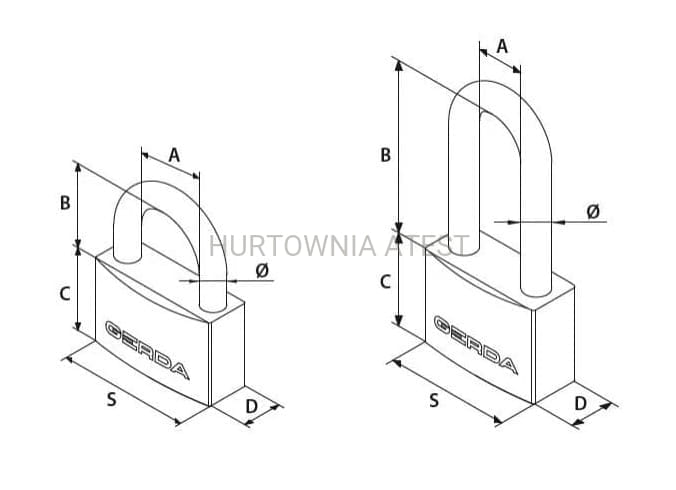 Popularna budżetowa kłódka żeliwna na mały klucz, samozatrzaskowa, lakierowana na kolor czarny, produkowana przez firmę Gerda. Kłódka należy do serii kłódek Gerda Iron Line. Korpus z żeliwa, pałąk utwardzany, zamknięcie typu zatrzaskowego. Do kłódki dołączono 3 klucze.