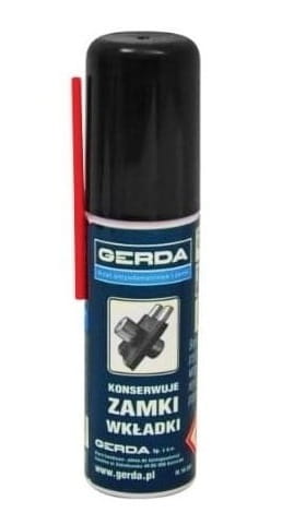Specjalistyczny środek do smarowania i konserwacji kłódek i wkładek firmy GERDA. Zalecamy regularne smarowanie części ruchomych, szczególnie gdy są narażone na działanie niekorzystnych warunków atmosferycznych, jak wilgoć, mróz, słońce. Stosowanie tego preparatu zapewnia niezawodność kłódek w długim okresie czasu.
